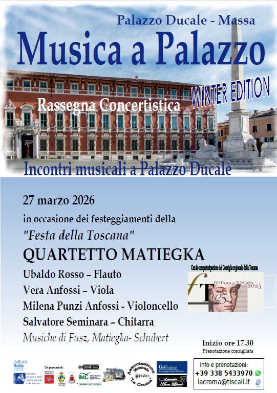 Palazzo Ducale di Massa Piazza Degli Aranci, 35, MassaRassegna concertistica 'Musica a Palazzo'. Venerdì 27 marzo, alle ore 17.30, Palazzo Ducale torna ad ospitare la musica, con il...