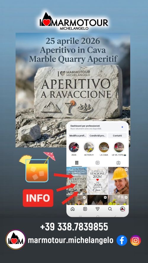 Evento enogastronomico e visita guidata. Sabato 25 aprile, dalle 17.00, presso la cava galleria Ravaccione a Carrara, singolare ed interessante...