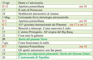 Calendario primaverile del Planetario “Masani” di Carrara
